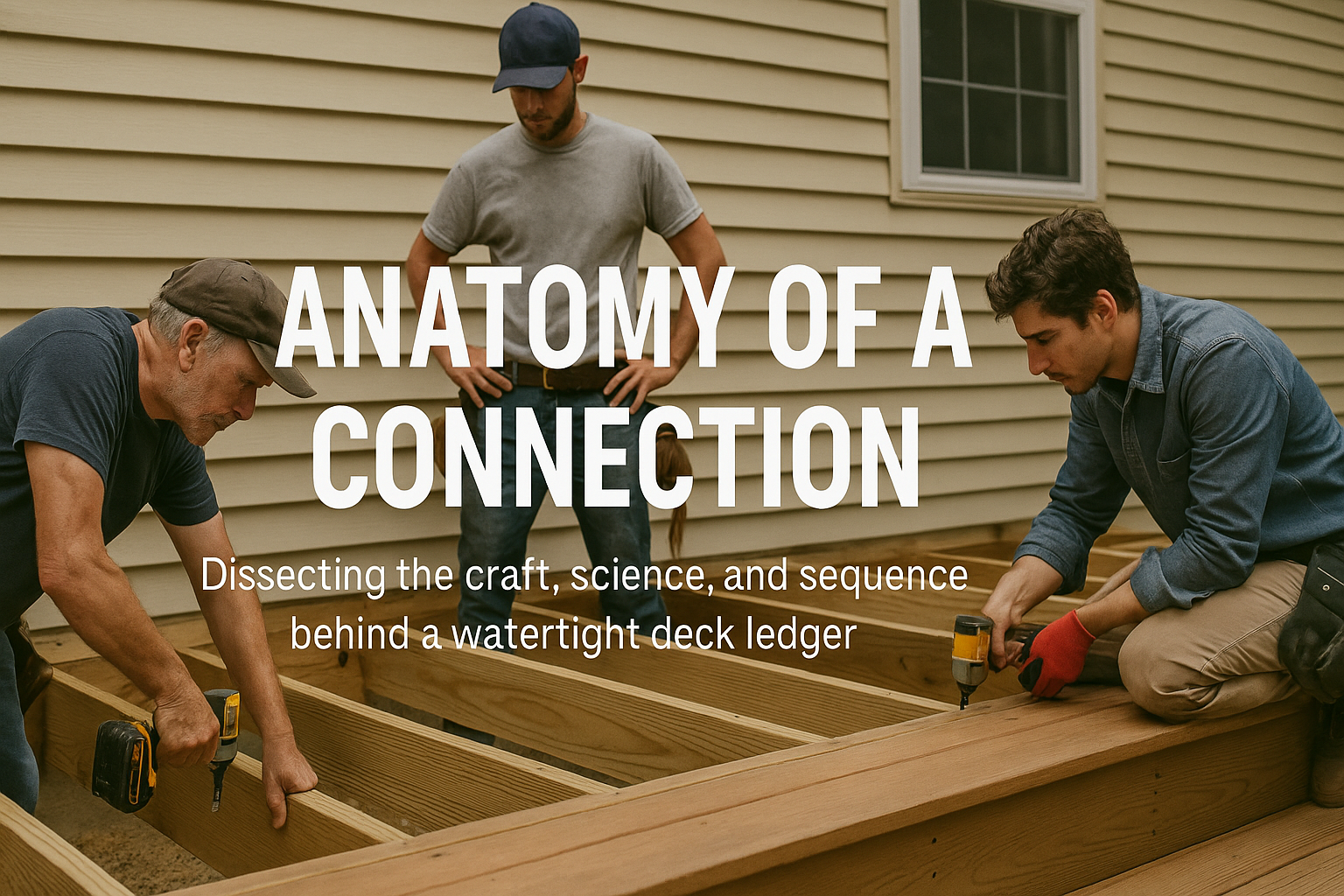 The ledger board serves one purpose: to create a secure and structural connection between the deck and the house. It is the transfer point where gravity loads from the deck joists move into the home’s framing. Without it, the deck would require its own independent support system, such as a freestanding platform. When properly detailed, the ledger allows the deck to feel like an extension of the home, not an attachment. It carries weight, resists lateral movement, and, when flashed correctly, keeps water out of the wall assembly.